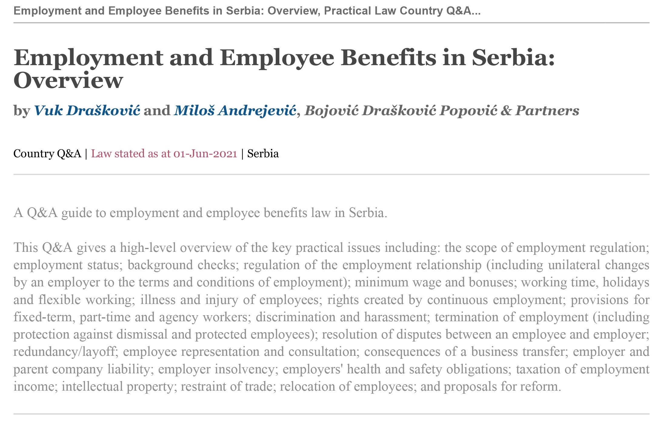 Partner Uroš Popović and senior associate Mario Kijanović contributed to the third edition of Pillsbury’s World Aircraft Repossession Index. This is the only publication of its kind.